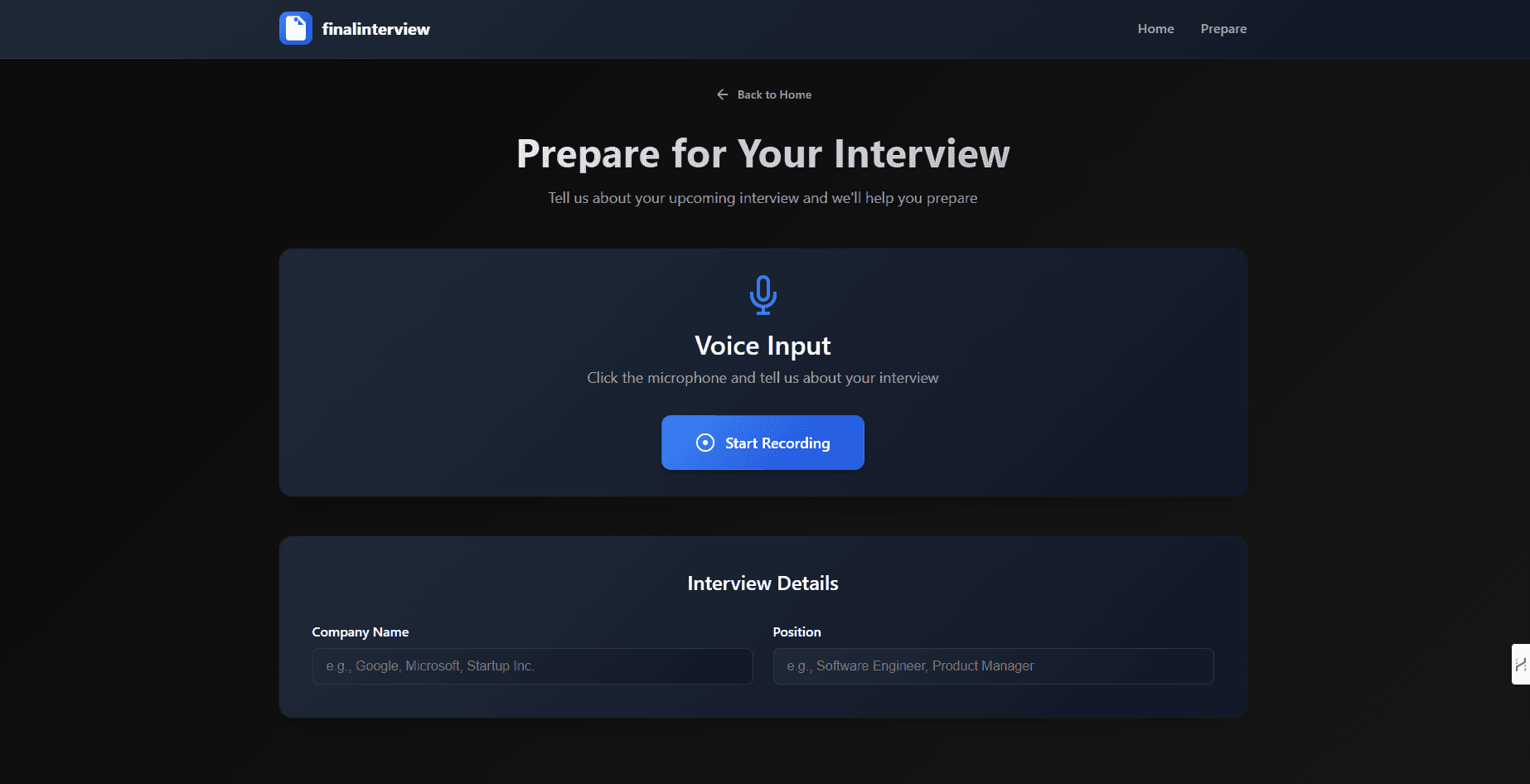 finalinterview is an AI-powered interview preparation platform that bridges the gap between academic readiness and real job acquisition by transforming generic prep into targeted, company-specific practice. It uses AI to analyze job postings, employee profiles, and company tech blogs to identify the exact programming languages, frameworks, and tools used by a candidate’s dream companies, then generates tailored portfolio pieces and coding challenges that mirror those real stacks and problems. The platform combines voice-based technical and behavioral mock interviews with ElevenLabs transcription, Vellum coaching, and Gemini analysis to deliver real-time feedback on clarity, structure, STAR usage, and delivery so students can iterate until they perform at interview-ready level, not just study-level.