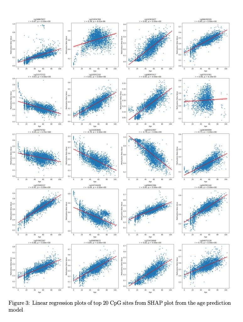 Performance Benchmarking: Compared model results against published epigenetic clock studies